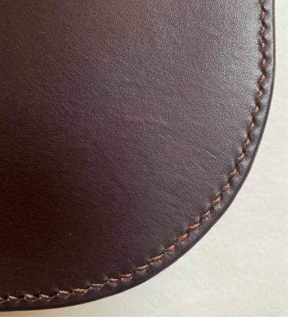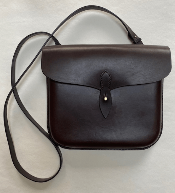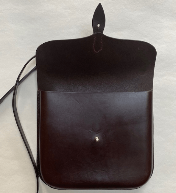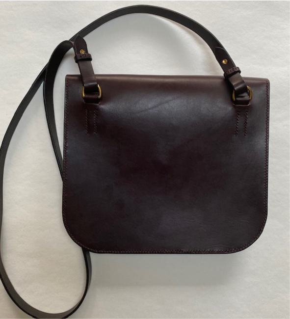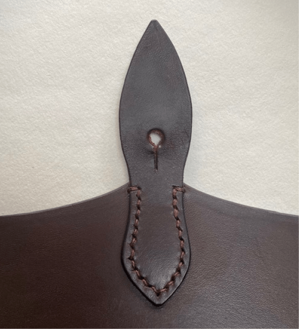 Vegetable-tanned leather with solid brass dee-rings and Sam Browne stud closure. Hand stitched with French linen thread.