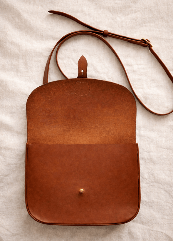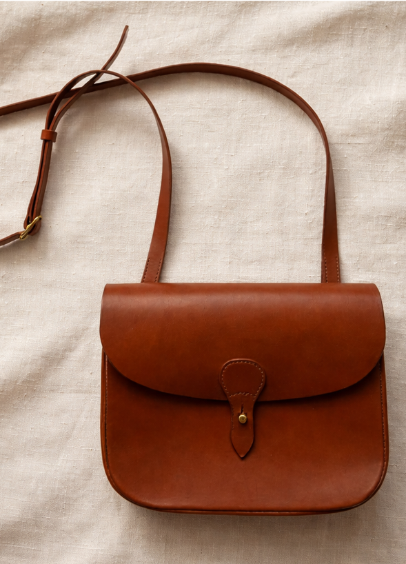 An understated design that is timeless and lovely. Crafted from wonderful leather that will become increasingly beautiful with the patina of age. The bag’s clean, minimalist design is enhanced by an adjustable strap, curved flap, and subtle brass hardware, making it both practical and a joy to use. A classic bag designed to be worn for years, not seasons.
